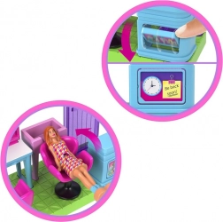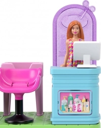 Set je doplněn o interaktivní prvky, jako je polohovatelná křeslo a otočná tabulka, která umožňuje dětem rozhodnout, zda je salon otevřený nebo uzavřený. Mini panenka Barbie se ohýbá v pase, což umožňuje ji snadno umístit na křeslo nebo k recepci. Dodatečnou výhodou je srdíčkový podstavec, kompatibilní s ostatními sety Mini BarbieLand.