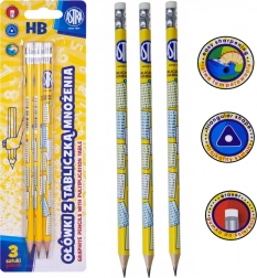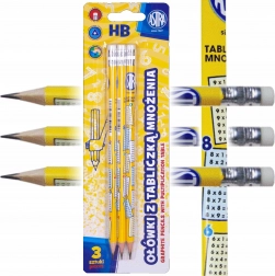 Sada tří tužek ASTRA s tvrdostí HB a praktickým potiskem násobilky usnadní učení i psaní. Nabízejí ergonomické trojhranné tělo pro pohodlný úchop, kvalitní tuhu 2,2 mm a praktickou gumu na konci. Dřevo pochází ze šetrně obhospodařovaných lesů.