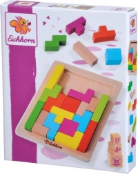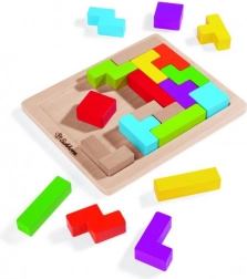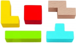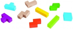 Chytrá dřevěná skládačka pro 1 hráče podporuje rozvoj jemné motoriky a logického myšlení. Obsahuje 20 barevných kostek z bukového dřeva v 5 různých tvarech a pevnou desku z překližky o rozměru 18 × 15 cm pro přesné skládání tvarů.