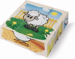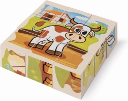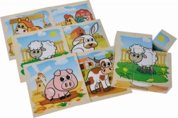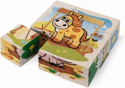 Sestavte si šest roztomilých obrázků se zvířátky z farmy z devíti dřevěných kostek. Set nabízí 6 motivů a 6 předloh pro snadné skládání, je vyroben z borového dřeva s FSC certifikací a po složení má rozměr 10,5 × 10,5 cm.