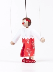 Objevte kouzlo tradičního loutkářství s postavičkou Marušky. Tato ručně vyráběná dřevěná loutka vzniká v chráněné dílně a vyniká pečlivým zpracováním. Díky vodicím nitím snadno rozhýbete její ruce a oživíte každou scénku.