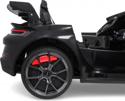 Tento luxusní dvoumístný model 911 GT3 pro děti přináší autentický sportovní zážitek. Silná baterie 24V 10Ah napájí čtyři motory 200 W, takže vůz plynule zrychluje a zvládá i nerovnosti. Dálkový ovladač s nouzovým tlačítkem Stop umožní rodičům mít vše pod kontrolou, zatímco LED světla vpředu i vzadu podtrhují realistický vzhled.