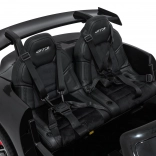Interiér s čalouněním z eko kůže s velurovým finišem a dvěma samostatnými sedadly zajišťuje pohodlí, trojstupňové nastavení sedadel se přizpůsobí růstu dětí. Multimediální panel s FM rádiem, MP3, USB, AUX a Bluetooth se postará o zábavu, nechybí zvuky a klakson na volantu ani režim SPORT se zvukem motoru při přidání plynu.
