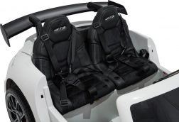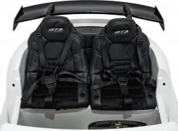 Toto elektrické auto pro děti kombinuje sportovní vzhled 911 GT3 s promyšlenou ergonomií a bezpečností. Dva samostatné sedáky z eko kůže s velurovým došitím a vícebodovými pásy zajistí komfort i při delších vyjížďkách. Díky měkkým EVA kolům (29×11 cm) a zadním tlumičům je jízda tichá a stabilní na různých površích. O reálný zážitek se starají LED světla, zvuky a „SPORT“ režim se zvukem motoru při sešlápnutí pedálu.