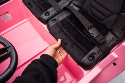 Bohatý audio panel MP4 přináší FM rádio, MP3, USB, Bluetooth a AUX, nechybí zvuky a klakson na volantu ani přednahrané melodie. Dvojité sedadlo z eko kůže s velurem má 3stupňové nastavení a bezpečnostní pásy. Rodiče ocení ovladač 2,4 GHz se třemi rychlostmi a funkcí Stop, indikátor stavu baterie a kvalitní zpracování.