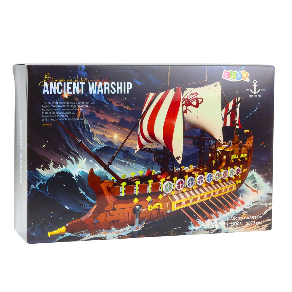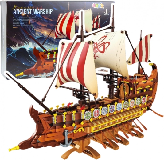 Věrně zpracovaný model inspirovaný antickými válečnými galérami přináší autentický vzhled i stavitelský zážitek. Najdete zde dlouhé řady vesel, realistické stěžně s plachtami, ozdobné štíty podél boku trupu a výrazně modelovanou palubu s prvky výzbroje. Stavebnice rozvíjí trpělivost, soustředění a jemnou motoriku a díky promyšlené konstrukci potěší i náročné modeláře.