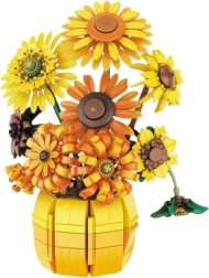 Tato designová stavebnice umožní postavit prostorovou kompozici slunečnic zasazených do elegantní vázy. Každý dílek věrně zachycuje tvar i strukturu rostlin, takže hotový model působí realisticky a dekorativně. Harmonická paleta odstínů žluté, oranžové, zelené a hnědé přirozeně zapadne do moderního interiéru, obýváku i pracovny.