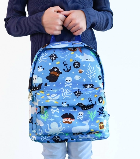 Roztomilý batůžek s pirátským motivem si děti zamilují a rodiče ocení jeho promyšlené zpracování. Hlavní komora pojme svačinu, láhev i drobnosti, zatímco přední kapsa na zip udrží vše po ruce. Ergonomii zajišťují polstrované ramenní popruhy a pohodlný zádový panel, hrudní popruh zase pomáhá udržet popruhy na ramenou i při běhu.