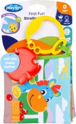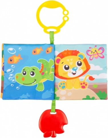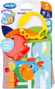 Lehká a zábavná závěsná knížka PLAYGRO pro nejmenší zaujme jasnými barvami, šuštivými stránkami a měkkým kousátkem pro úlevu při prořezávání zoubků. Díky univerzálnímu klipu ji snadno připnete na kočárek, autosedačku či postýlku, takže je ideální na cesty od 0+ měsíců.
