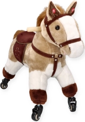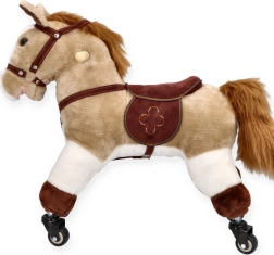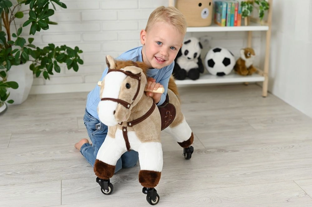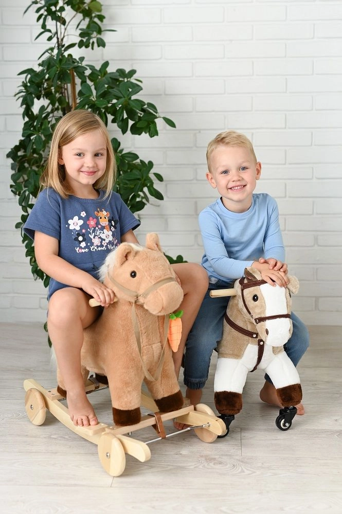 Stylový jezdecký parťák pro malé milovníky koní. Pevná konstrukce, měkký plyš a svižná kolečka zvou k jízdám po bytě i chodbě.