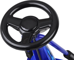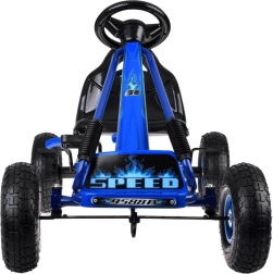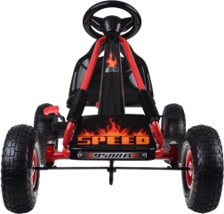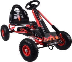Tato sportovní šlapací motokára je stvořená pro aktivní děti, které milují pohyb na čerstvém vzduchu. Díky pevné konstrukci z ocelových trubek a širokým, hluboce vzorovaným pneumatikám nabídne stabilitu, pohodlí i jistotu řízení na různých površích.
