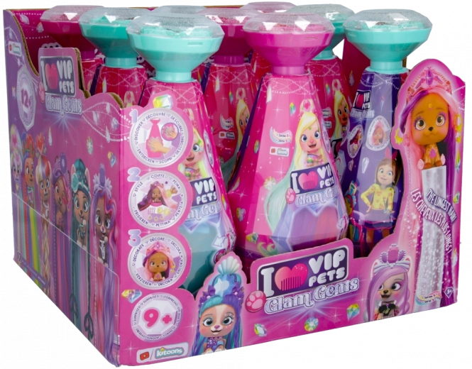 Sada VIP PETS Glam Gems S5 je stvořená pro všechny, kdo milují třpyt, barvy a zábavné účesy. Každé tematické balení skrývá roztomilou figurku mazlíčka s dlouhými vlásky a výběr lesklých doplňků, které promění každou hru v kreativní kadeřnické studio.