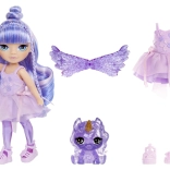 - Dlouhé česatelné vlasy, průhledné nohy s barevným nádechem, odnímatelná křídla pro panenku i mazlíčka