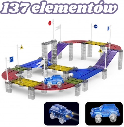 Woopie magnetická závodní dráha s autíčkem, 137 dílů