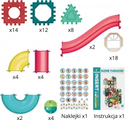 - Magnetické destičky, rynny, zatáčky, trubice, kuličky, ilustrační návody