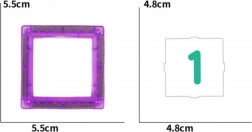 - 8 modrých čtverců, 7 červených čtverců, 9 šedých čtverců, 7 fialových čtverců, 9 zelených čtverců, 30 edukačních karet s čísly