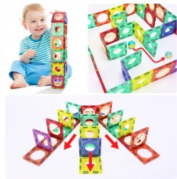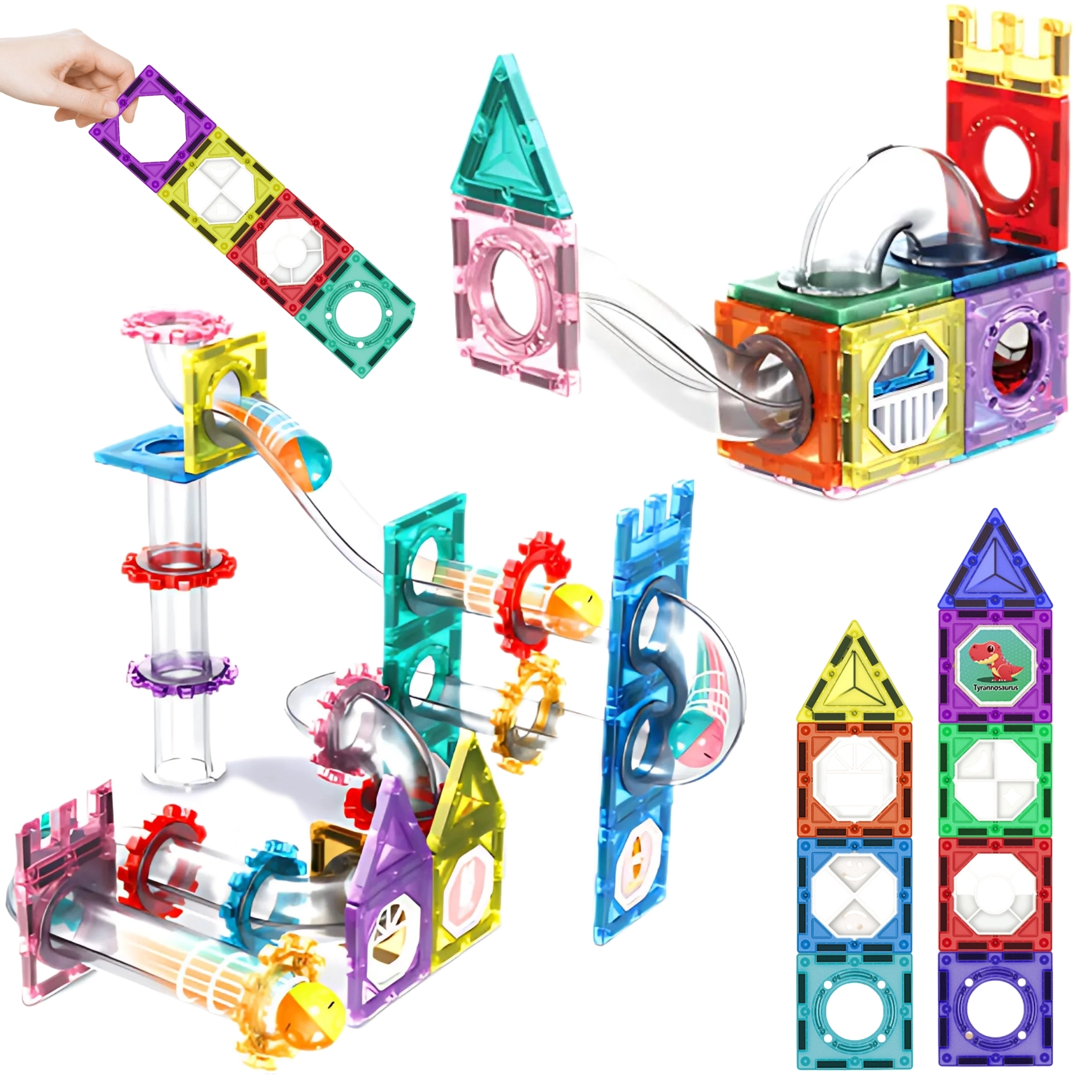Tato vzdělávací stavebnice nabízí nespočet konstrukčních možností – od jednoduchých drah po složité a stabilní stavby. Díky bezpečným magnetickým spojům se dílky snadno připojují a drží tvar, takže si děti užijí plynulou jízdu kuliček a experimentování s rychlostí a směrem.