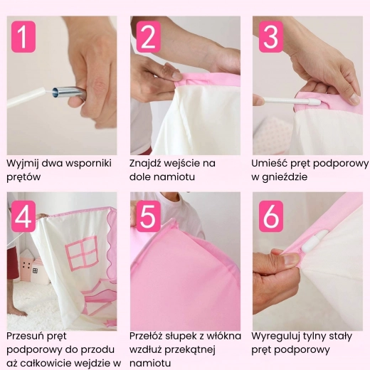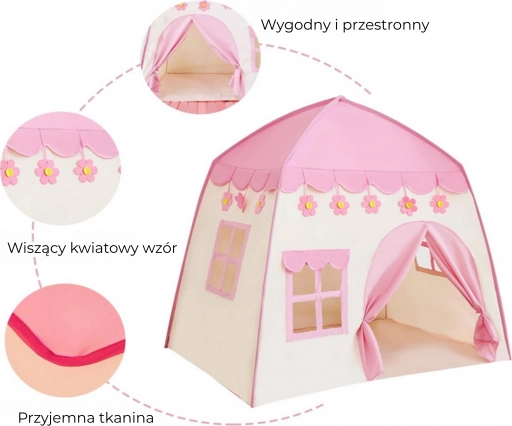 Vytvořte dětem jejich vlastní kouzelné místo. Tento prostorný stan domeček v jemném růžovém odstínu poskytne bezpečný koutek pro čtení, hraní i odpočinek. Díky jednoduché a lehké konstrukci jej snadno postavíte doma i na zahradě a stejně rychle zase složíte.
