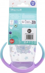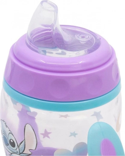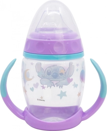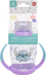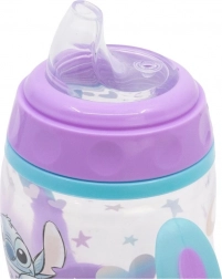 Hrneček s oušky a silikonovým náustkem STITCH 270 ml pomáhá dětem pohodlně a bezpečně přecházet z lahvičky na hrneček. Měkký náustek je šetrný k citlivým dásním a zoubkům, zatímco protiskluzové úchyty zajišťují jistý úchop i u malých ručiček.
