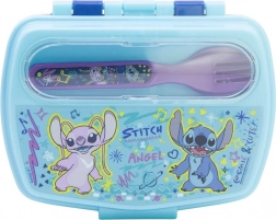 Praktický box na svačinu s vidličkou a lžičkou s oblíbeným motivem ANGEL A STITCH pro pohodlné každodenní použití. Je odolný vůči pádům a nárazům, snadno se vejde do školní tašky či batohu a je vyroben bez BPA pro bezpečné použití dětmi.
