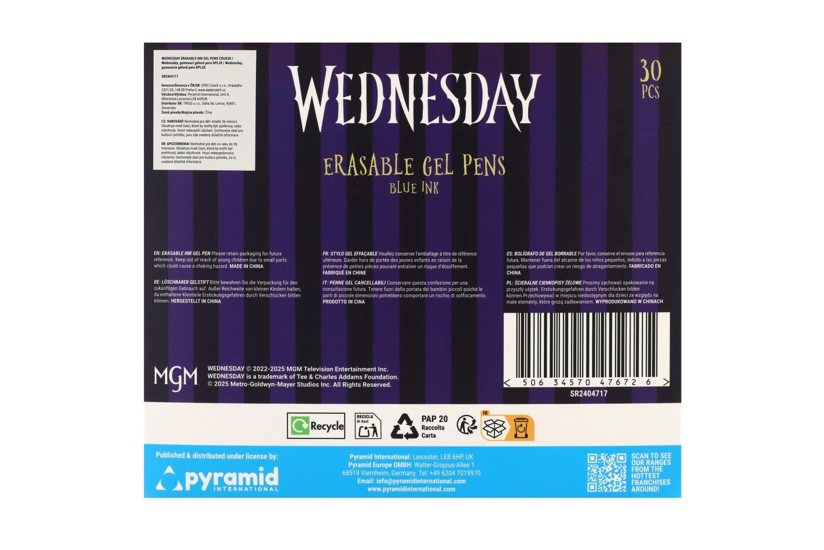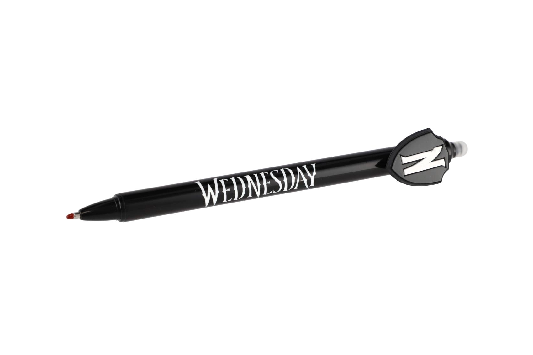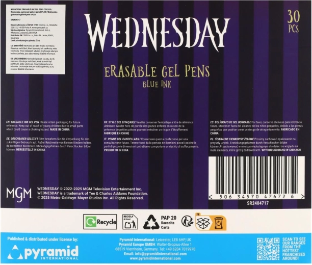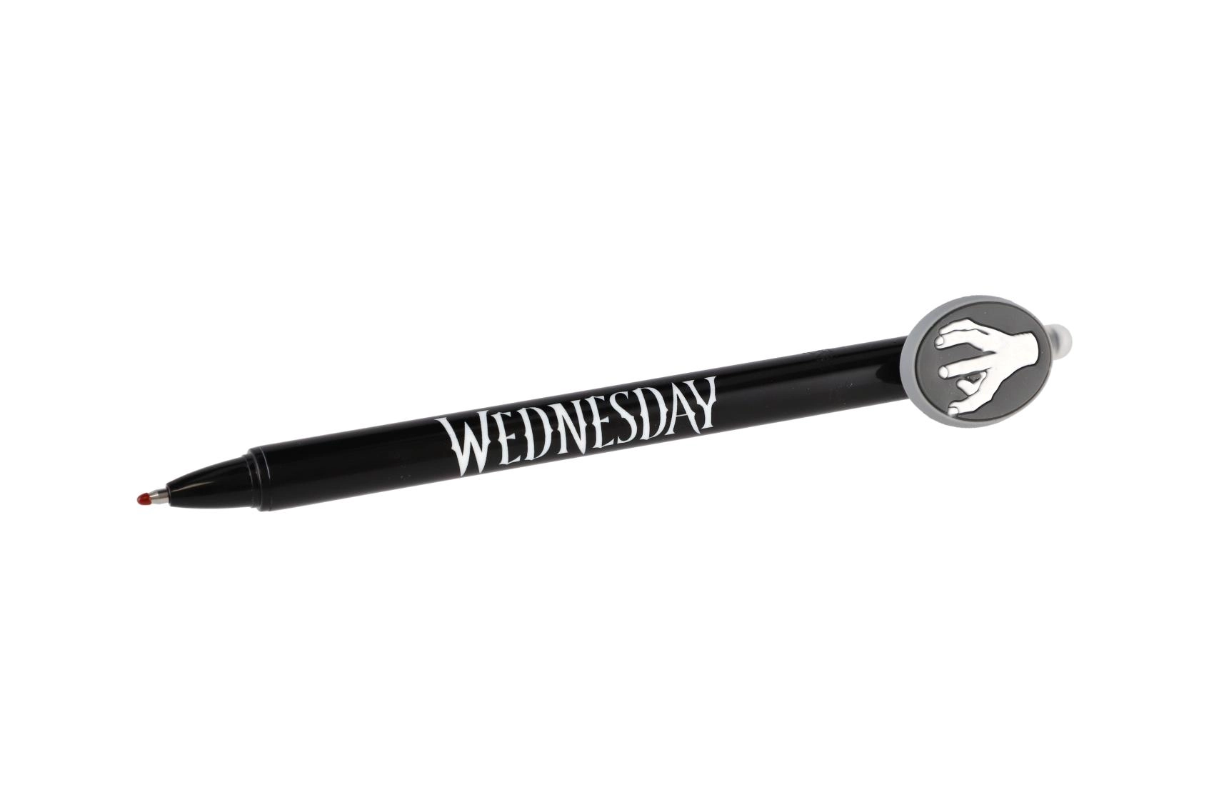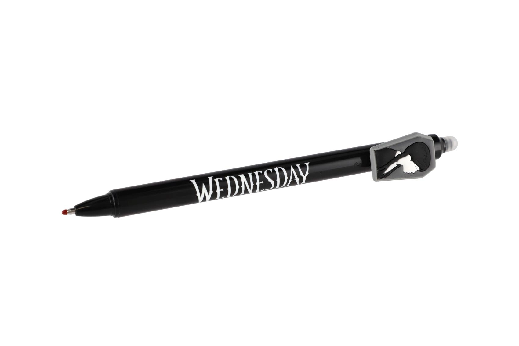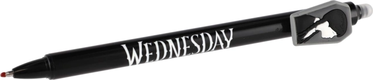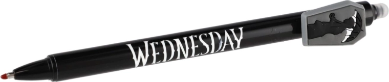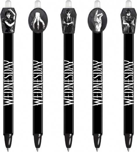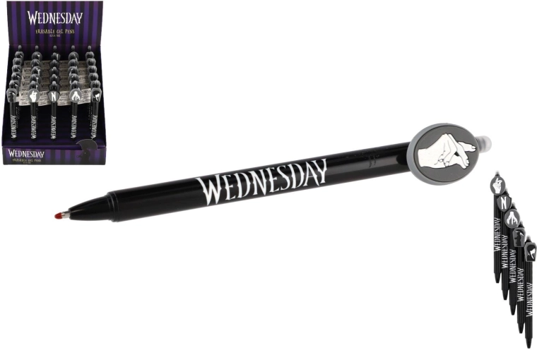 Objevte zábavné a praktické gumovací gelové pero s motivem Wednesday. Už žádné škrtání – chyby jednoduše vymažete speciálním gumovacím hrotem. Ideální do školy, pro psaní bez stresu a pro všechny fanoušky licence.