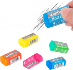 Praktická a stylová gumovací pryž WEIBO v pestrých barvách spolehlivě maže stopy obyčejné tužky bez šmouh a bez poškození papíru. Díky rozměrům 6 × 2 × 1 cm se pohodlně drží, dlouho vydrží a její výrazné barvy ji snadno najdete v penálu či na stole. Jemný syntetický materiál bez latexu, účinné mazání bez rozmazávání a náhodný výběr barvy z ní dělají ideální volbu do školy i kanceláře.