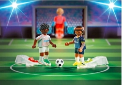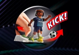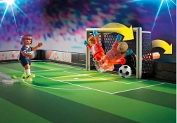 Rozložte skládací arénu, postavte týmy a začněte zápas! Tento set z řady PLAYMOBIL Sports & Action přináší dynamickou hru s parádními herními prvky. Díky praktickému mechanismu lze hráče vystřelit do míče a přesně mířit na branku, zatímco brankáři na pohyblivých tyčích mohou bleskově reagovat a krýt střely.