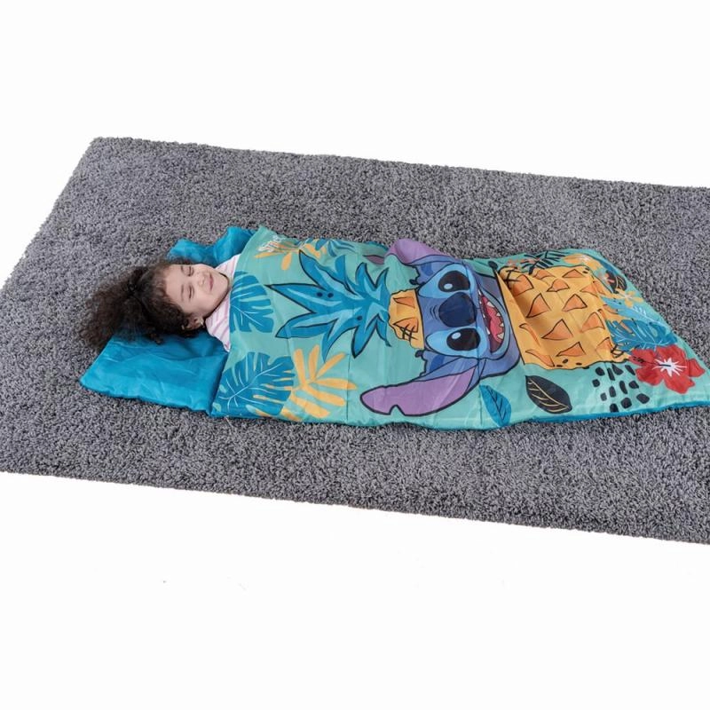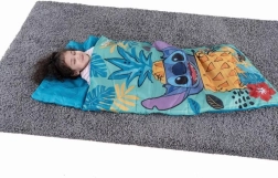 Pohodlný dětský spací pytel s motivem STITCH je ideální na přespání u kamarádů, letní tábory i rodinné výlety. Nabízí příjemný materiál, praktické rozměry 140 × 60 cm a hravý design, který si děti zamilují.