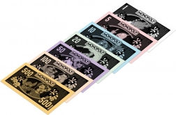 Pastelově zbarvené bankovky s jasně vyznačenými hodnotami urychlí platby a zpřehlední transakce během hry.