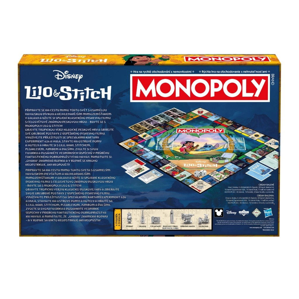 Vstupte do světa Havaje s Lilo a jejím kamarádem Stitchem v rodinní přívětivé edici Monopoly. Tato verze přináší svěží vizuál, oblíbené lokace a atmosféru filmu, která potěší děti i dospělé. Cílem je chytře investovat, takticky obchodovat a stát se nejbohatším hráčem na pláži.