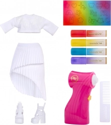 Součástí je stylová panenka s dlouhými bílými vlasy, kloubovým tělem a kompletním bílým outfitem připraveným k barvení. Oživte její vlasy, šaty i boty a dolaďte detaily přímo fixem pro precizní dekor. Ideální dárek pro děti, které milují módu, barvy a tvoření.