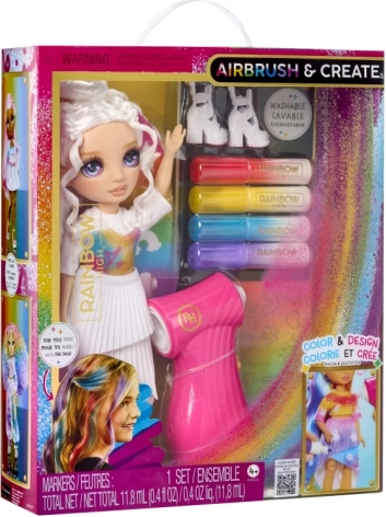 Objevte svět kreativity s panenkou Rainbow High Airbrush & Create. Tato unikátní sada umožňuje dětem navrhovat vlastní styl panenky pomocí omyvatelných fixů a vzduchového „airbrush“ nástroje. Panenka je celá v bílé a připravena na vaše nápady – barvěte její vlasy, oblečení i boty. Díky omyvatelnému inkoustu můžete tvořit znovu a znovu, rozvíjet fantazii a užívat si kreativní hru bez nepořádku.