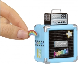 V balení najdeš vše pro okamžitou hudební zábavu – dvoudílný módní set, stylové boty, mikrofon se stojanem, mini zesilovač, arch samolepek na dozdobení a hřeben na úpravu vlasů. Kombinuj doplňky, vytvářej příběhy a sbírej i další členky kapely, aby tvoje scéna byla úplná.