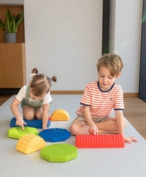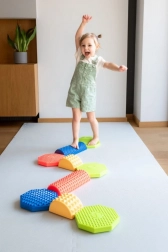 Sestavte si libovolnou trasu z barevných kamenů, bloků a trámků a proměňte pohyb v zábavu. Každý díl má odlišnou výšku a reliéfní povrch pro jistý krok a bezpečné cvičení. Skvělé pro domácí hravou aktivitu, školky, školní družiny i senzorickou terapii.