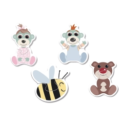 První dětské puzzle pro nejmenší: sada obsahuje 4 skládanky, každá ze 2 velkých a pevných dílků, ideální pro děti od 1 roku. Barevné ilustrace s roztomilými miminky a veselou včelkou podporují zrakové vnímání a motivují k hraní. Velké a silné dílky se snadno uchopují malými ručkami – bez frustrace, jen radost z objevování.