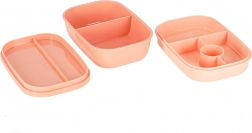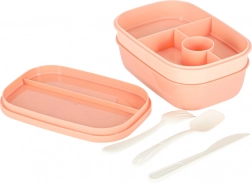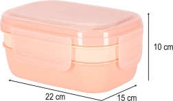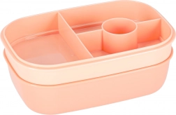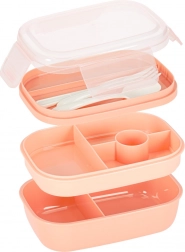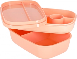 Třípatrová konstrukce se 8 přepážkami umožní zabalit hlavní chod, přílohy i svačinu zvlášť. Čtyři klipsy pevně uzavřou víko se silikonovým těsněním, takže obsah zůstane v bezpečí i v tašce. Meruňková barva dodává moderní vzhled.
