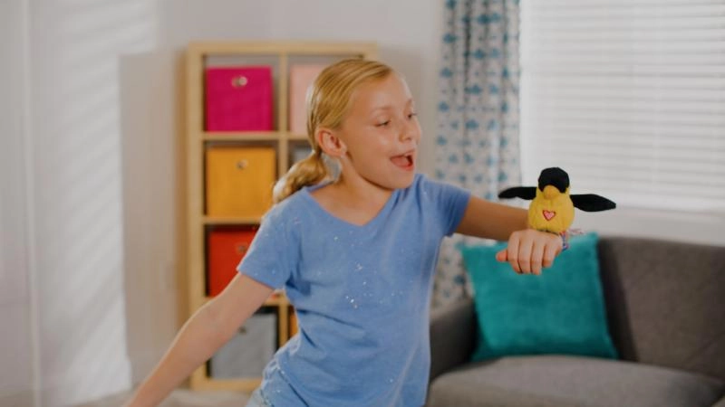 Tento veselý interaktivní ptáček potěší děti svými zvuky a pohybem. Po připnutí na ruku se stane tvým parťákem, který reaguje na hlas, opakuje jednoduchá slova a zpívá vlastní melodii. Díky mávajícím křídlům působí živě a vtáhne děti do hry.