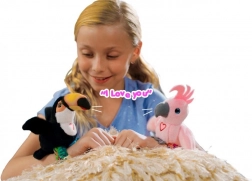Objev kouzlo interaktivní hračky, která ožije na tvé ruce. Steppos Happy Yappers tukan umí po stisknutí tlačítka opakovat, co říkáš, přehraje veselou ptačí melodii a při tom mává křídly. Zábavný společník pro děti, který podporuje komunikaci a fantazii.