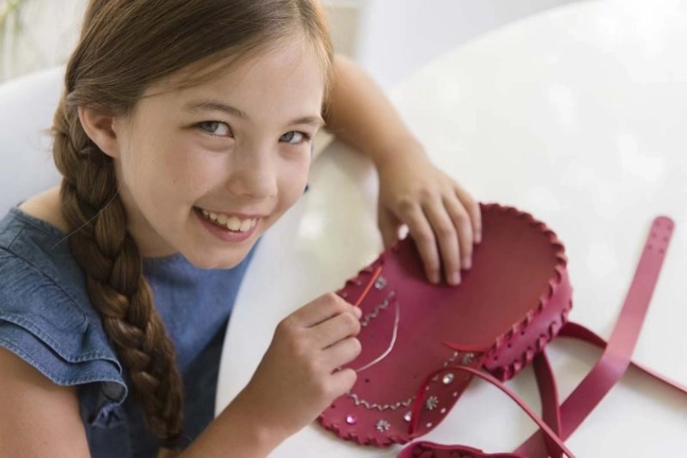 - Učte se základní techniky práce s umělou kůží – stříhání, děrování a jednoduché šití.