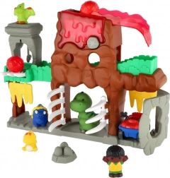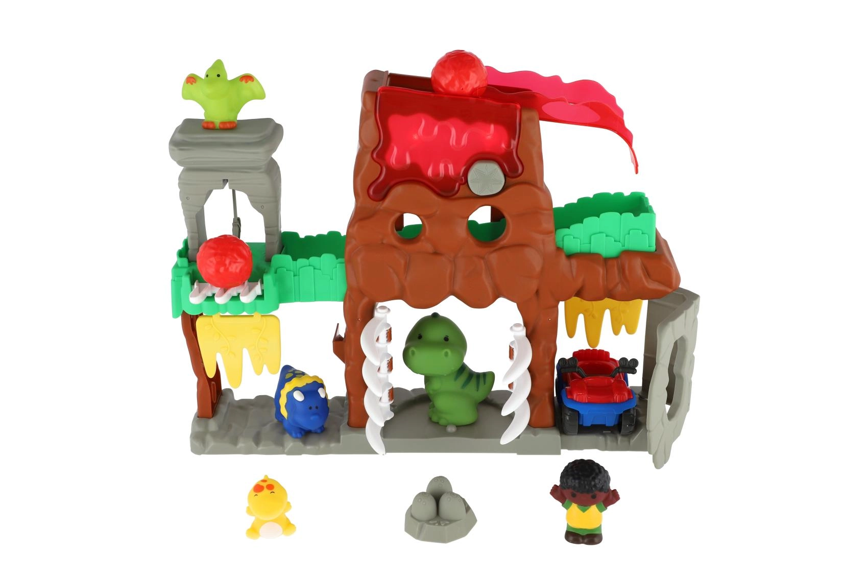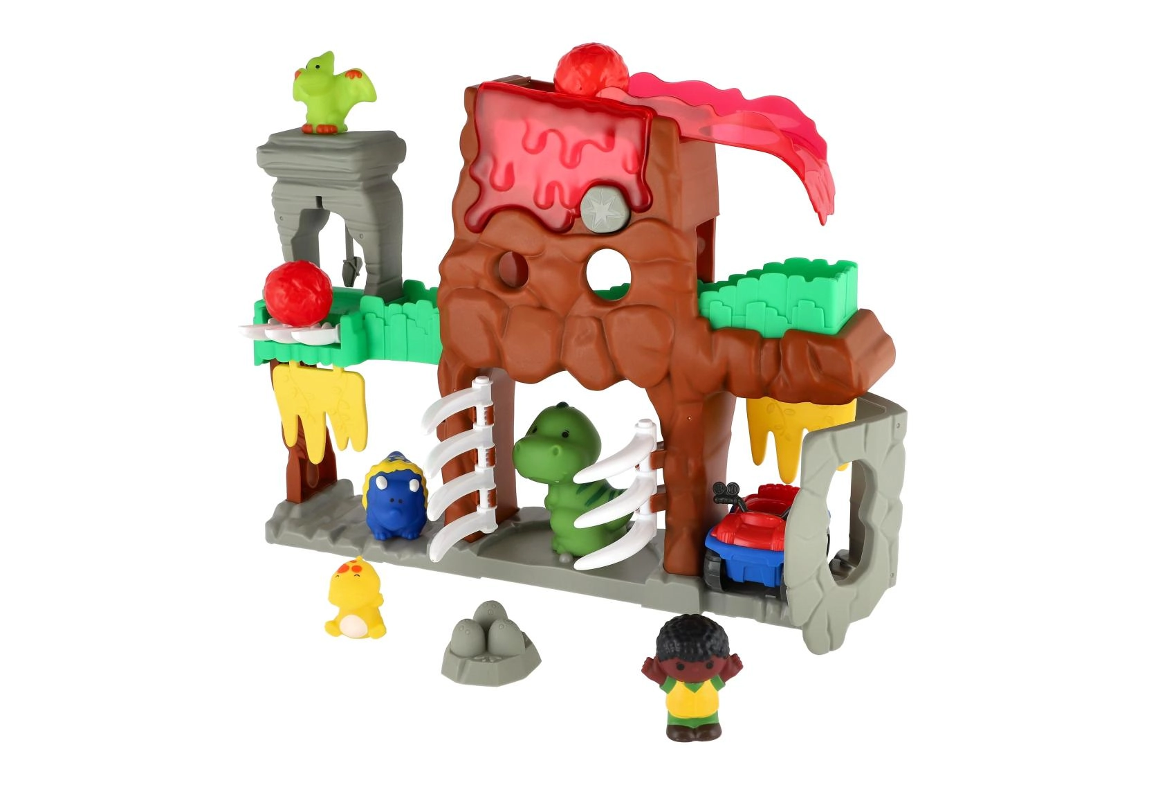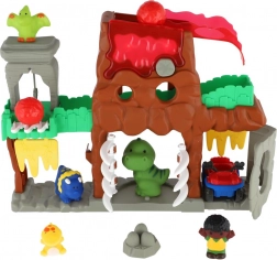 Objevte interaktivní dinosauří svět s vulkánem, tunely a pohyblivými prvky, které vybízejí k tvořivé hře. Děti mohou spouštět kameny, projíždět vozidlem, otevírat brány a vymýšlet si vlastní napínavé příběhy s roztomilými figurkami.