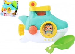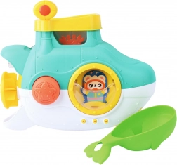 Zábavná plastová ponorka do vany promění každé koupání v malé dobrodružství. Díky přísavkám ji snadno připevníte na stěnu vany nebo obklad, do horní části lze nalévat vodu lopatkou a sledovat pohyblivé prvky a vodní efekty. Barevný design podporuje fantazii a rozvoj motoriky. Vhodné pro děti od 12 měsíců.