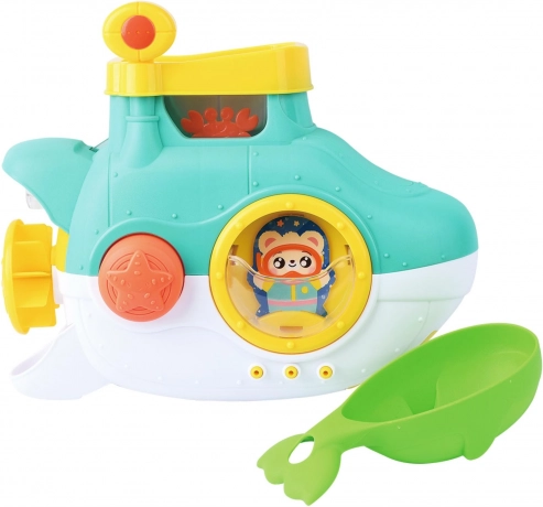 Tato barevná ponorka do vany přináší dětem zábavu a učení současně. Pomocí přiložené lopatky nalijte vodu do horní části a sledujte, jak se roztočí pohyblivé prvky a voda začne proudit. Praktické přísavky zajistí, že ponorka pevně drží na hladkých površích vany či obkladu.