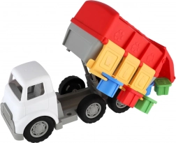 Barevné odpadkové koše a boční dvířka umožňují realistickou hru na třídění odpadu. Děti se učí základům ekologie hravou a názornou cestou.