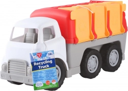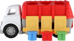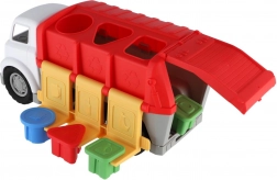 Tento barevný popelářský vůz nadchne malé milovníky úklidu a recyklace. Horní část slouží jako vkládačka tvarů s otvory, do kterých děti přiřazují správné dílky a učí se tak rozpoznávat tvary a barvy. Boční otevírací dvířka a odnímatelné koše umožňují zábavnou imitaci sběru odpadu.