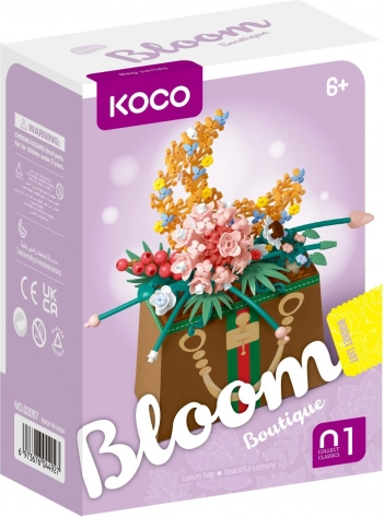 Objev kouzlo kreativního stavění s mini stavebnicí KOCO. Z 245 kvalitních plastových dílků vytvoříš originální květinu ukrytou v elegantní kabelce, která ozdobí poličku, pracovní stůl nebo potěší jako dárek. Díky promyšlenému designu je stavba zábavná a výsledek pevný a dekorativní.