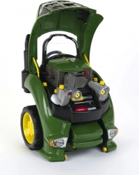 Tento detailně zpracovaný model přední části traktoru JOHN DEERE spojuje jízdu na odrážedle s konstrukční hrou. Po zvednutí kapoty čeká děti bohatě vybavený motorový prostor s šrouby, kryty a díly k demontáži. Světla i zvuky motoru a klaksonu umocní realistický zážitek ze hry.