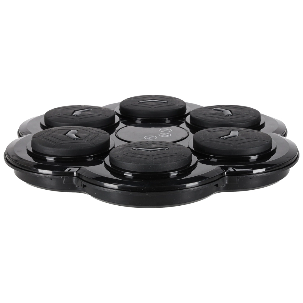 Vestavěné LED efekty a hudební doprovod přes Bluetooth dodají tréninku tempo a motivaci. Elektronické počítání bodů přináší okamžitou zpětnou vazbu a soutěžní náboj. Napájení řeší akumulátor 3,7 V 1200 mAh s nabíjením přes USB-C, montáž je snadná díky přiloženým páskům na suchý zip, přísavkám a oboustranné pěně.
