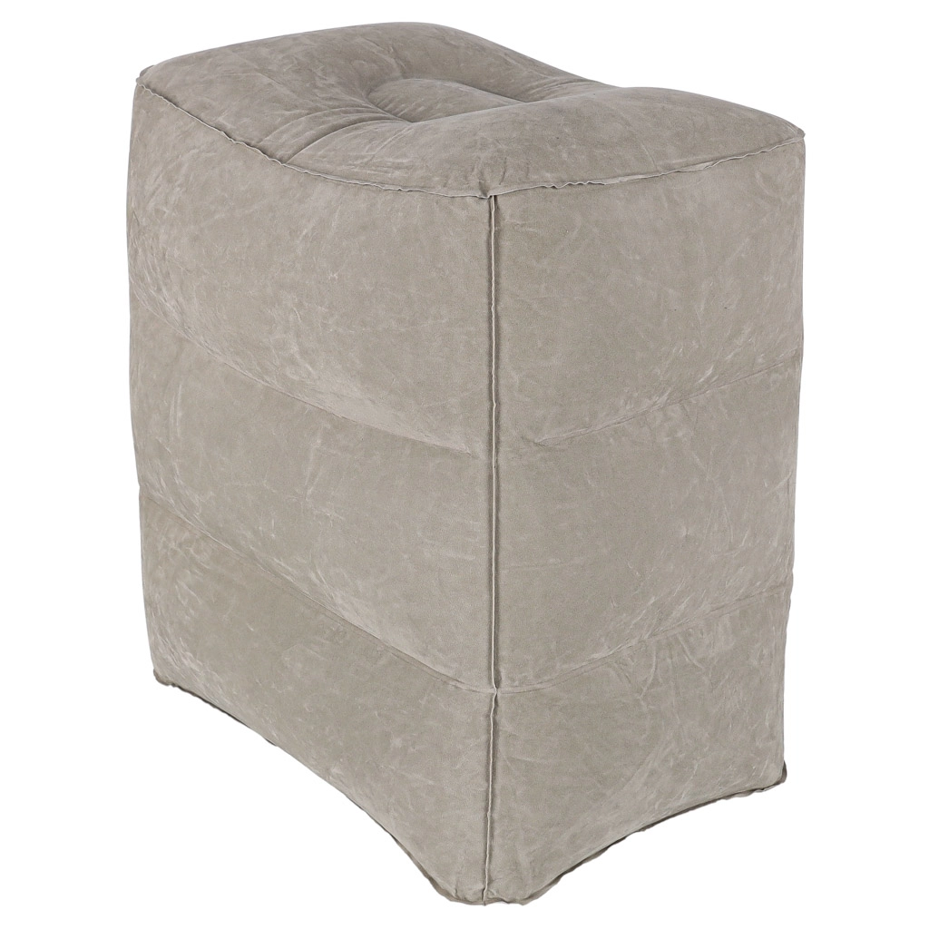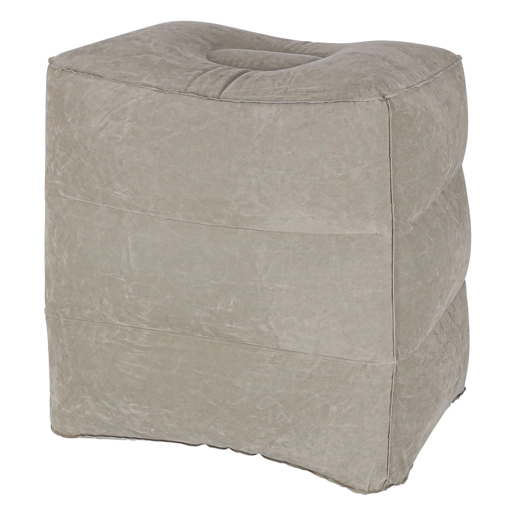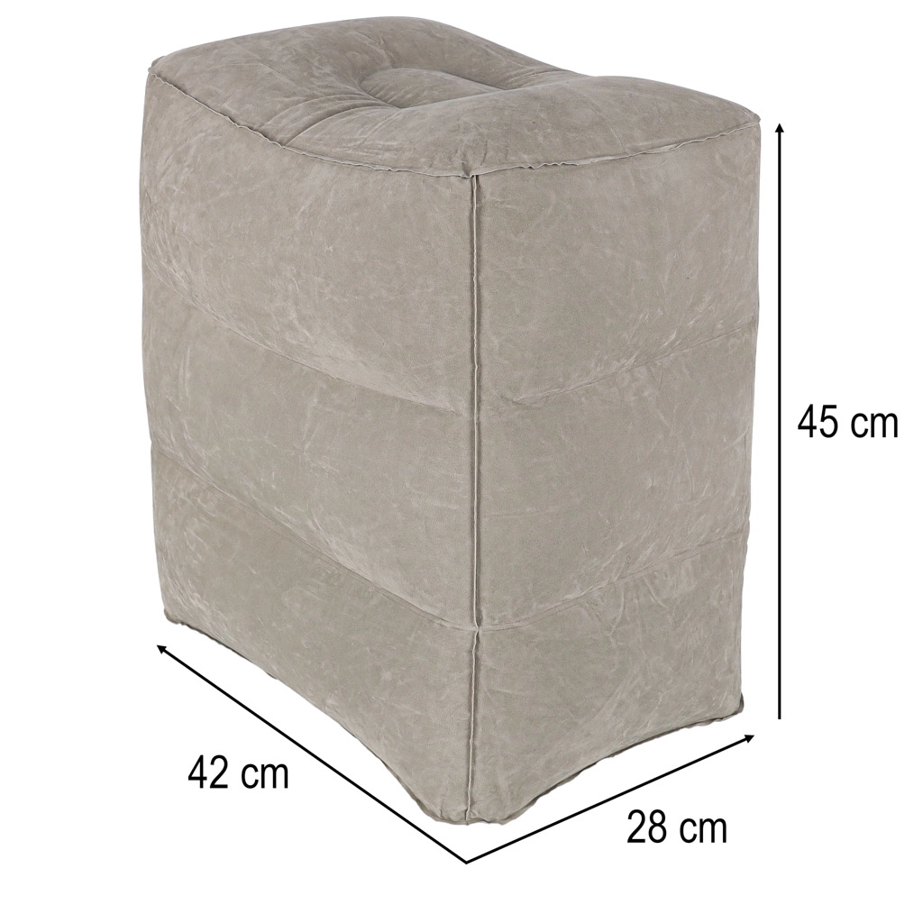 Odolné PVC s příjemným flockovaným povrchem zajišťuje stabilitu i pohodlí. Podnožka se rychle nafukuje běžnou pumpou na matrace či míče (koncovka 14 mm) a po vyfouknutí ji uložíte do kompaktního pouzdra se stahováním.