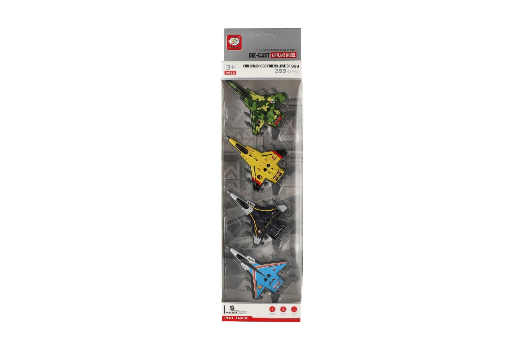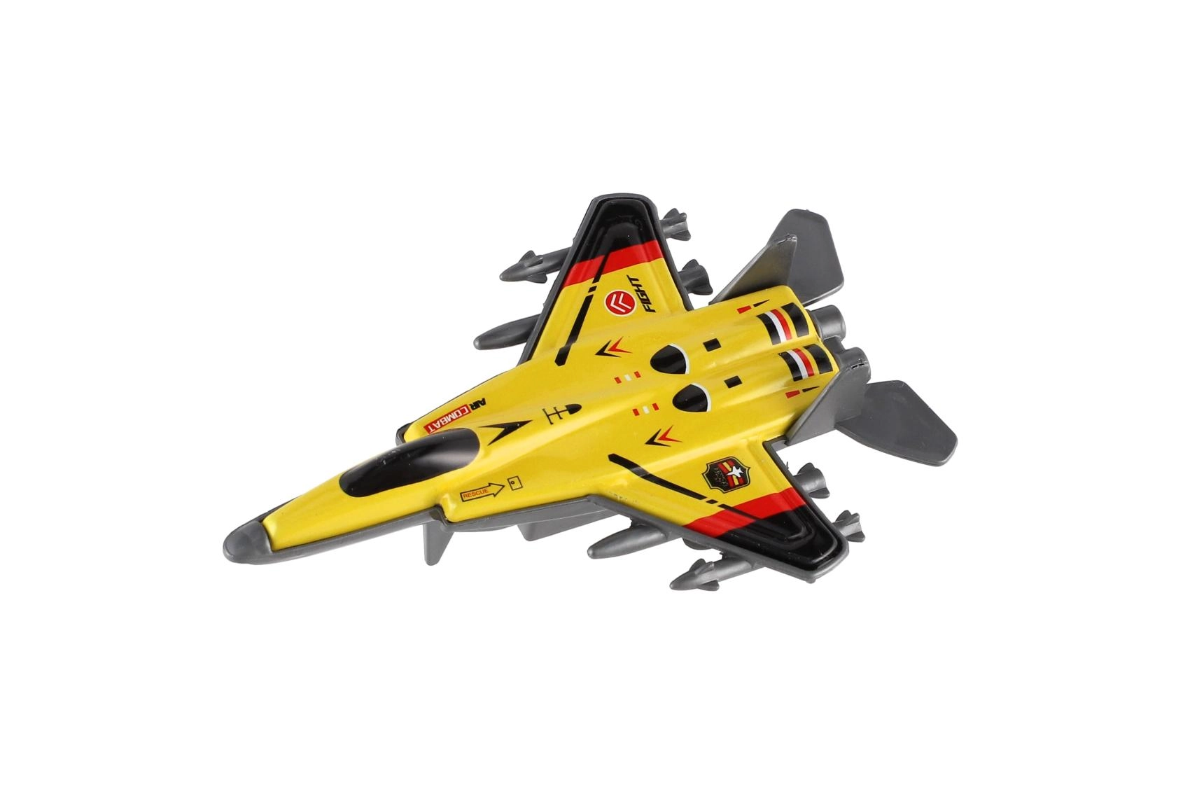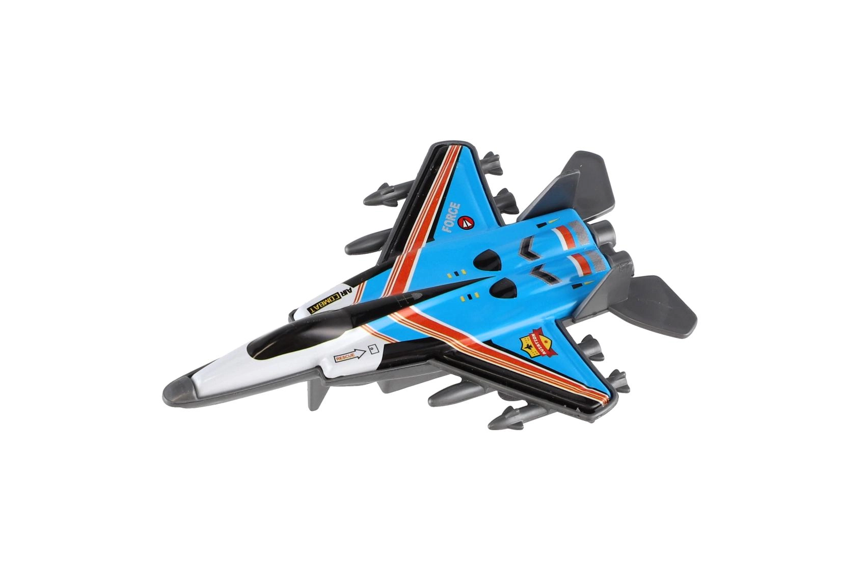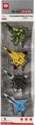 Sada čtyř moderních stíhacích letadel s kovovým tělem a funkcí zpětného natažení (pull-back) přináší spoustu zábavy pro malé piloty. Každé letadlo má atraktivní design, robustní zpracování a originální barevné provedení, díky čemuž je hra pestrá a napínavá. Ideální velikost 10 cm skvěle padne do dětské ruky a usnadňuje manipulaci.