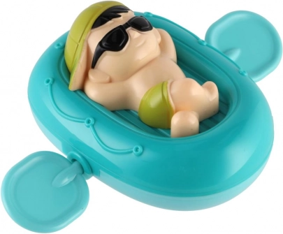 Užijte si bezstarostné vodní radovánky s tímto roztomilým natahovacím panáčkem na lehátku. Ideální do vany i bazénu, jeho natahovací mechanismus rozhýbe ruce i nohy a věrně simuluje plavání. Hračka je lehká, odolná a skvěle padne do dětské ruky, potěší děti od 3 let.